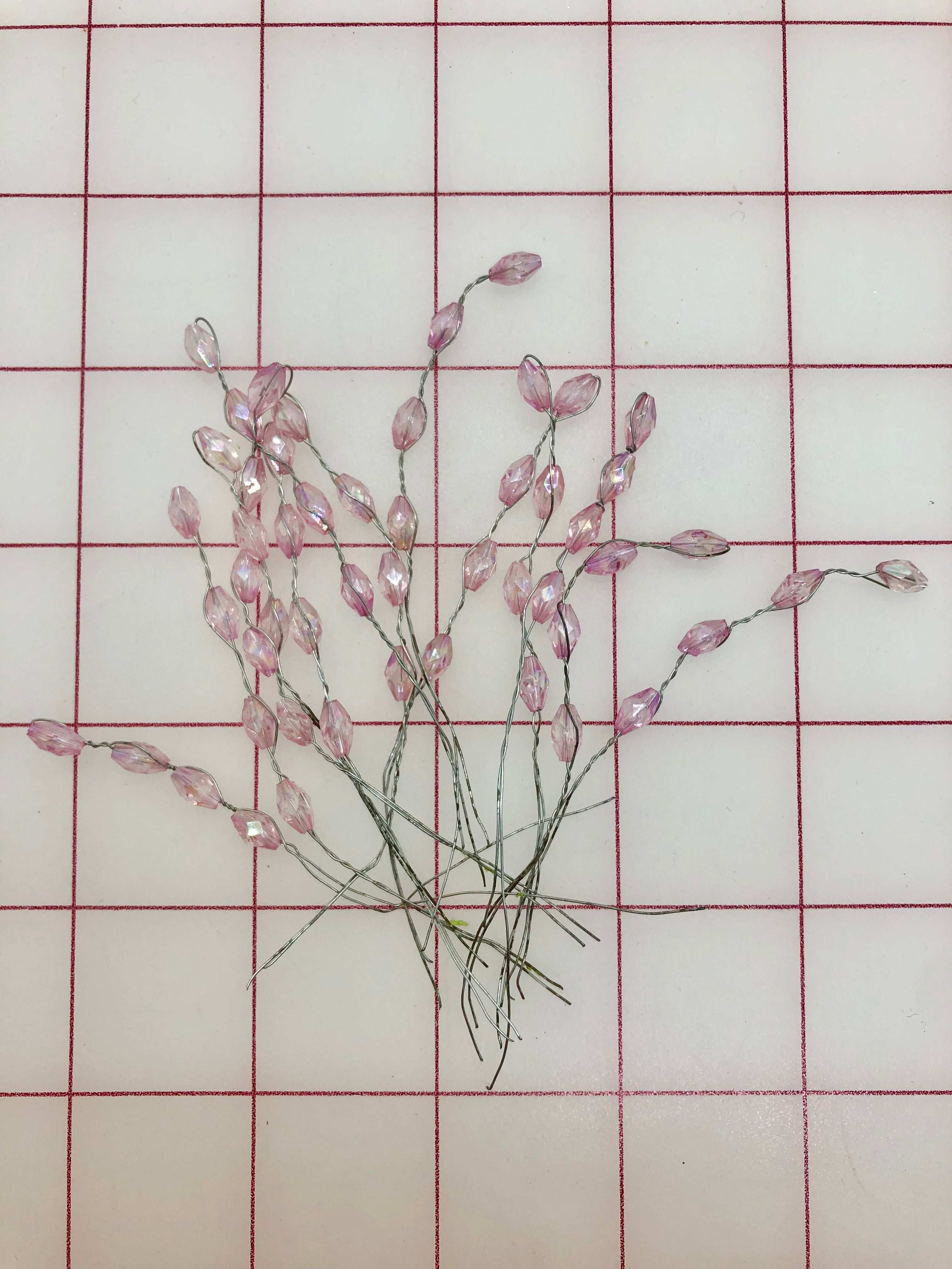 Priced per 12-pack. Pink AB acrylic bead spray. Great for use with tiaras and other headpieces.