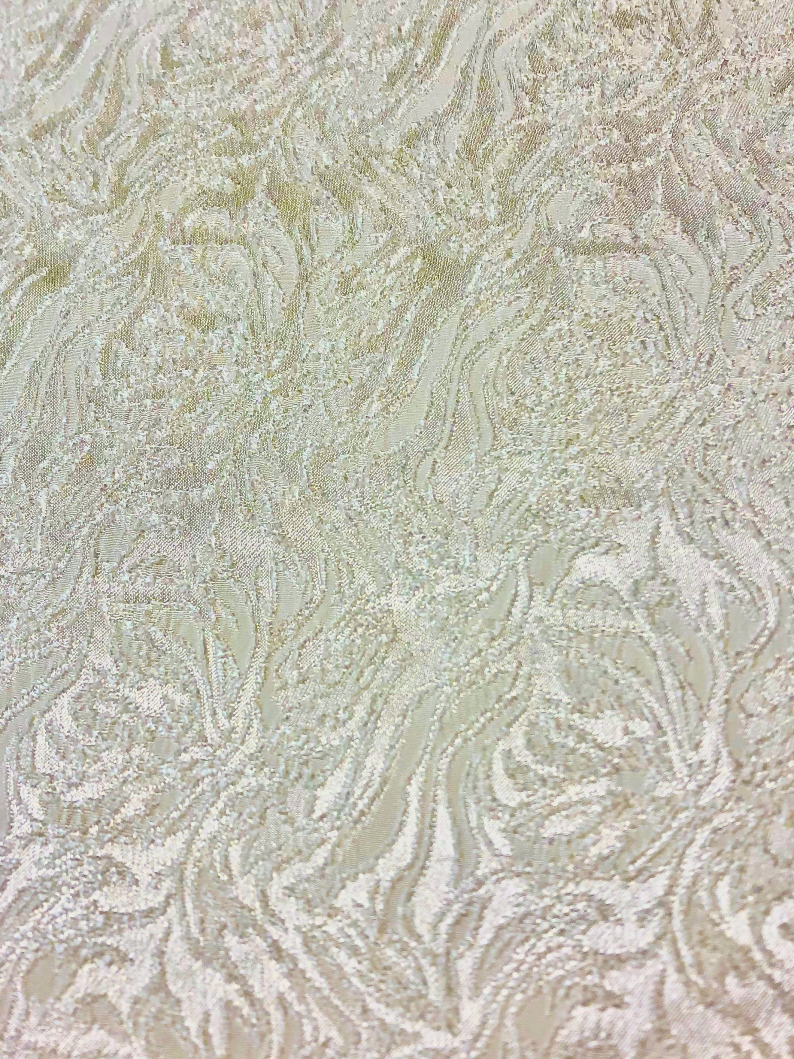 Priced per yard. Ivory stretch brocade. 57-inches wide.