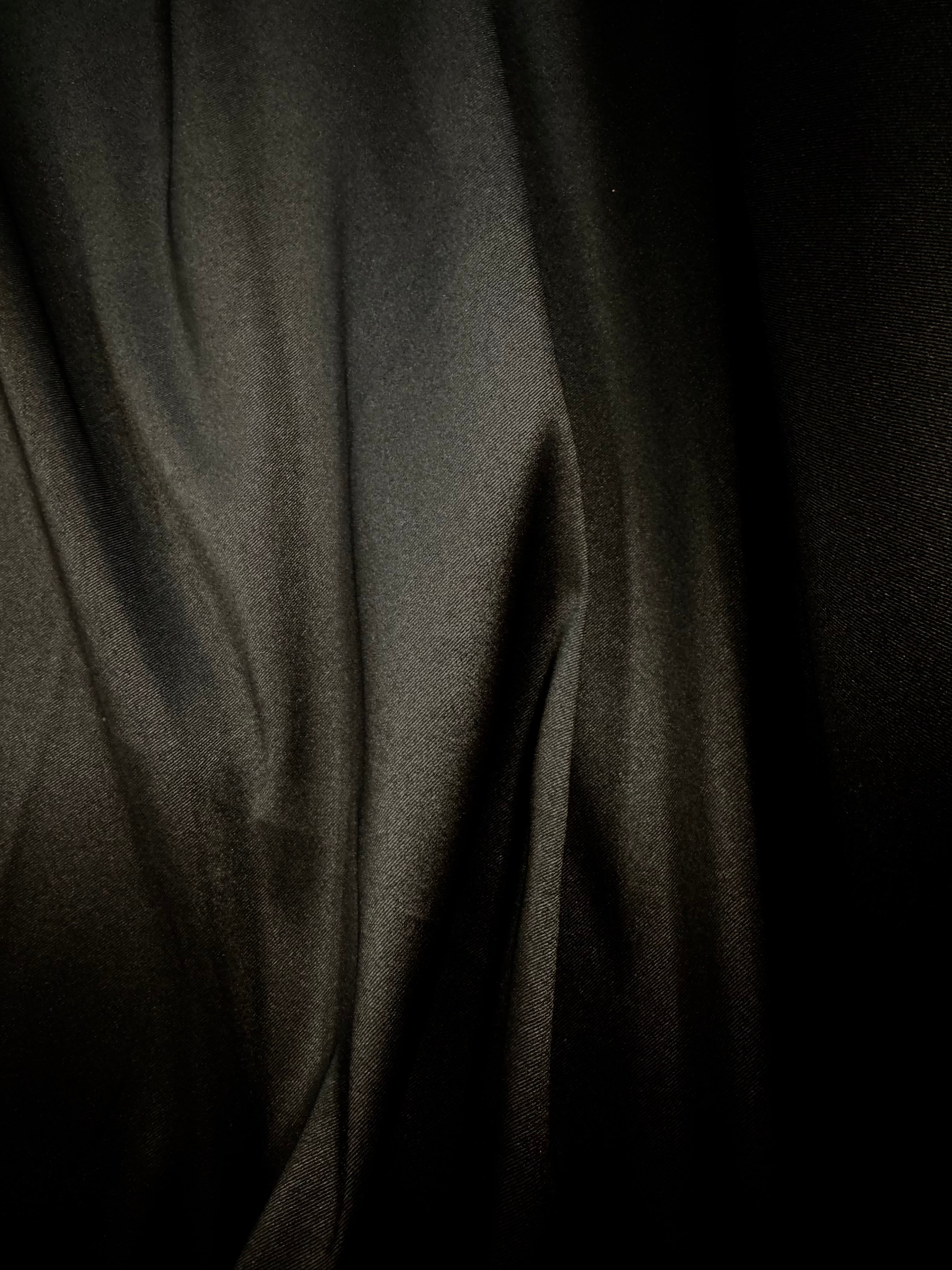 Priced per yard. This is a beautiful, black very strong, tight-weave, medium-weight stretch Mikado/Twill, 58-inches wide. Matte finish.