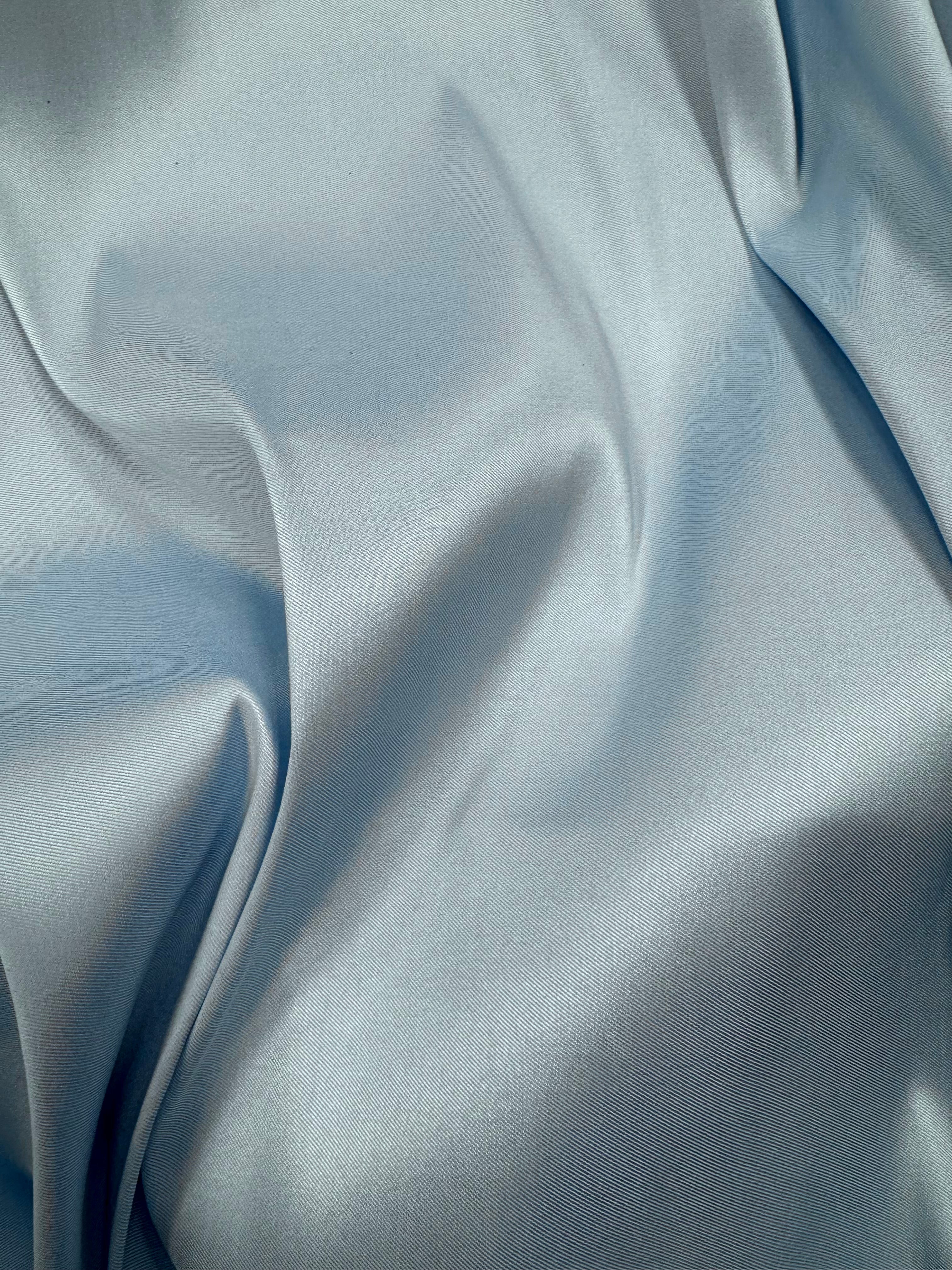 Priced per yard. This is a beautiful, soft, light blue very strong, tight-weave, medium-weight stretch Mikado/Twill, 58-inches wide. Matte finish.