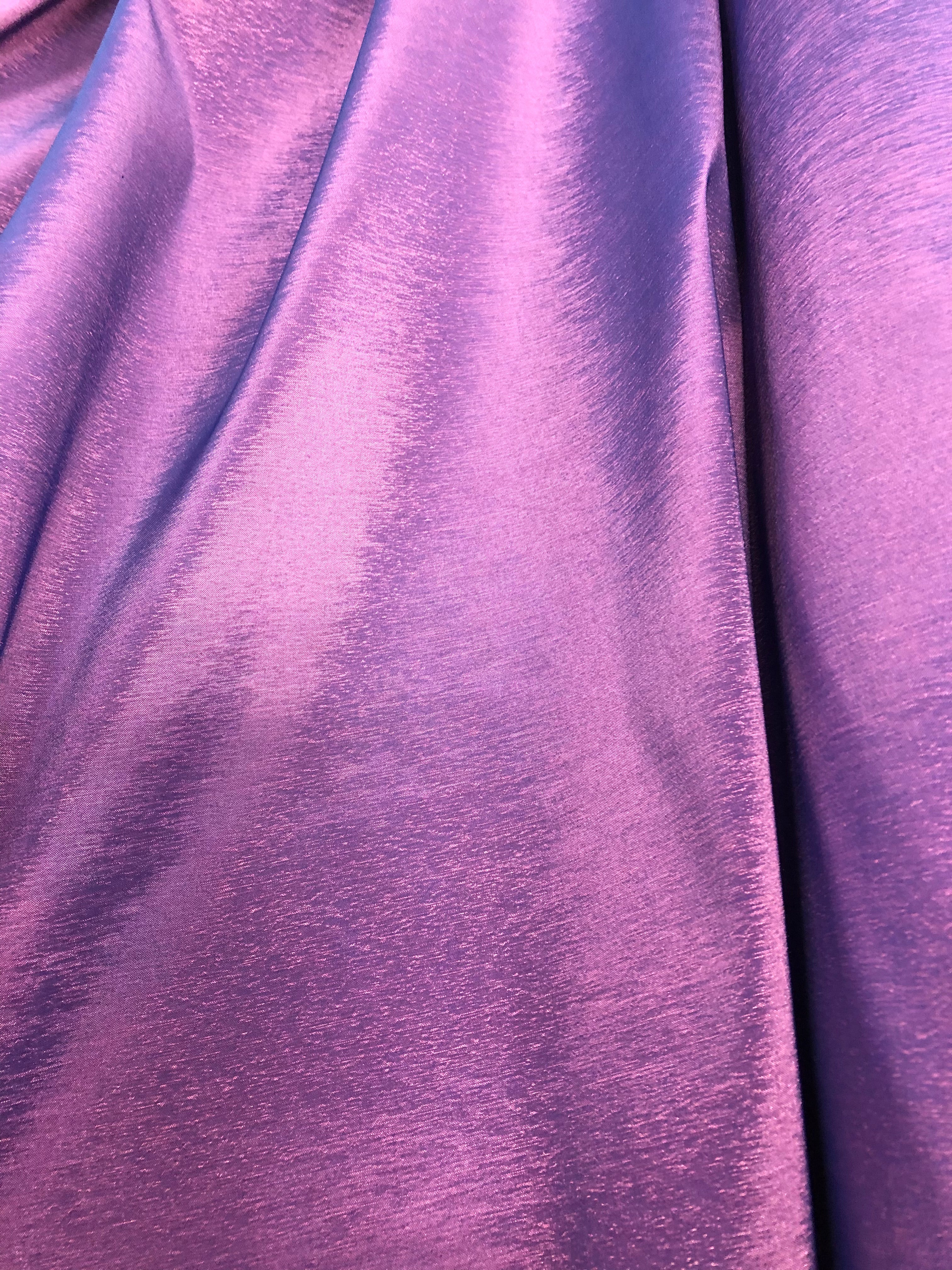 Priced per yard. Iris, a beautiful Violet shade, stretch taffeta, 56-inches wide. Gorgeous fabric for ballet bodices - easy to clean, sturdy, but has stretch for comfort. This color goes well with our Plum and Orchid Nets and tulles. 32% Nylon, 62% Polyester, 5% Spandex.