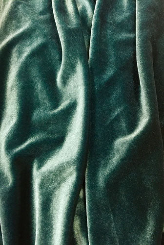 Priced per yard. Hunter stretch velvet, 60-inches wide. Perfect for leotards, stretch tutus, and many other costumes. 90% polyester, 10% Elastano. Weight = 35 grams per yard.
