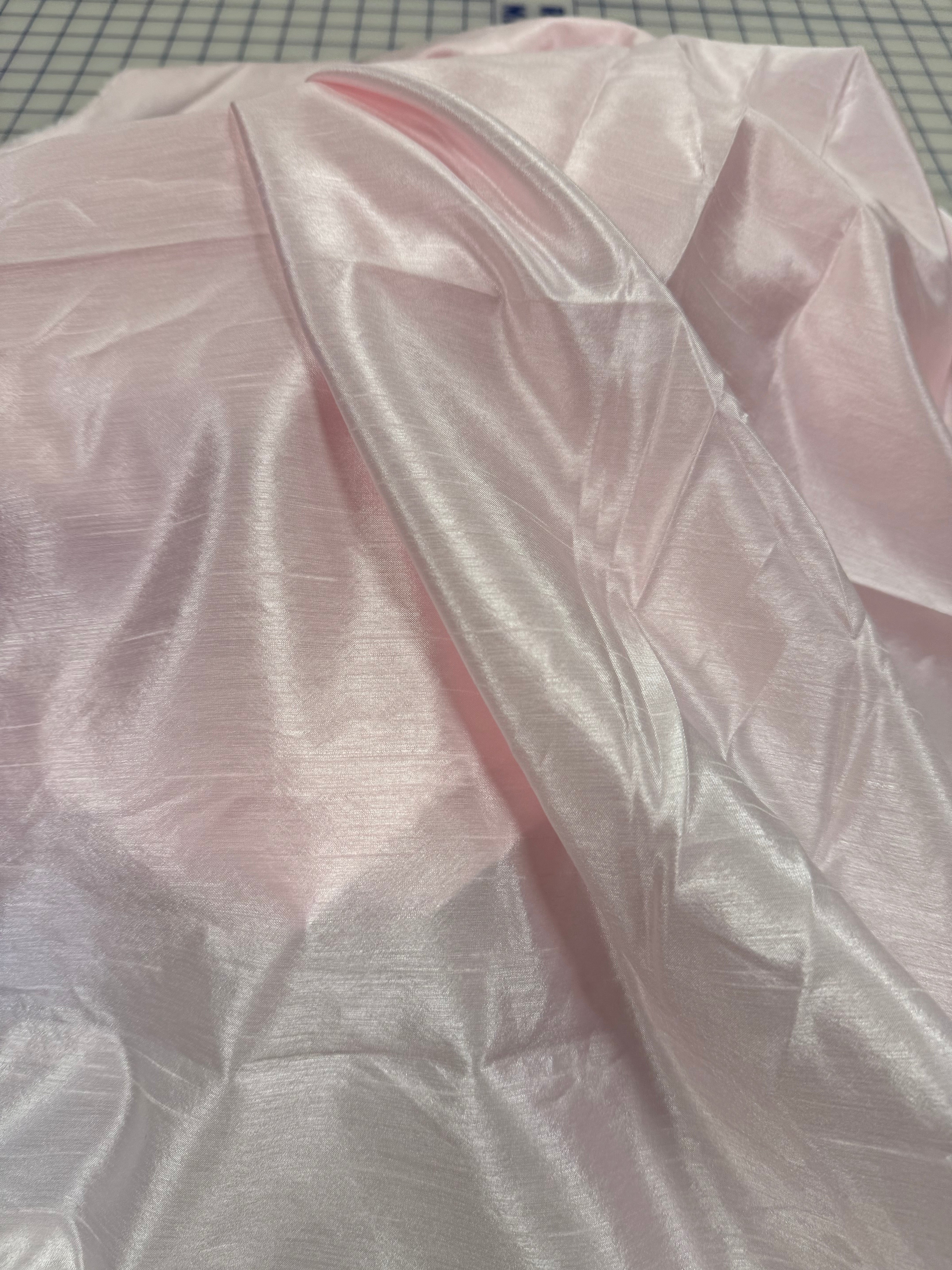 Priced per yard. 100% polyester light pink taffeta lining weight. Lightweight. Can be used for ballet bodices if lined with a sturdy fabric like coutil. Also makes beautiful lightweight skirts for ballet performances.