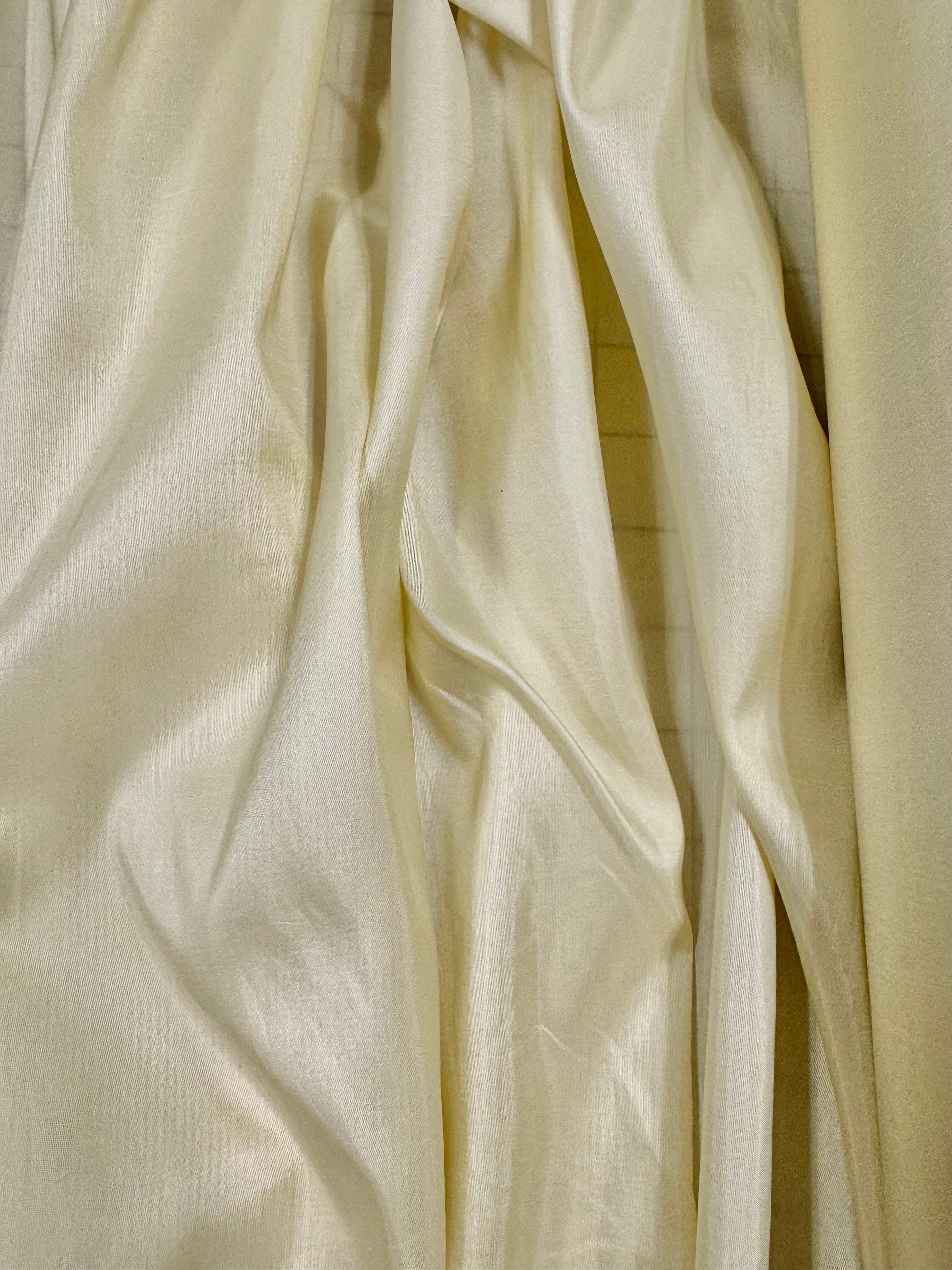 Priced per yard. Ivory lightweight taffeta. A beautiful shade of ivory. Can be used as a lining fabric, OR lined with coutil will work for a ballet bodice. Also lightweight enough to ruffle into tiers for a Spanis-style skirt.