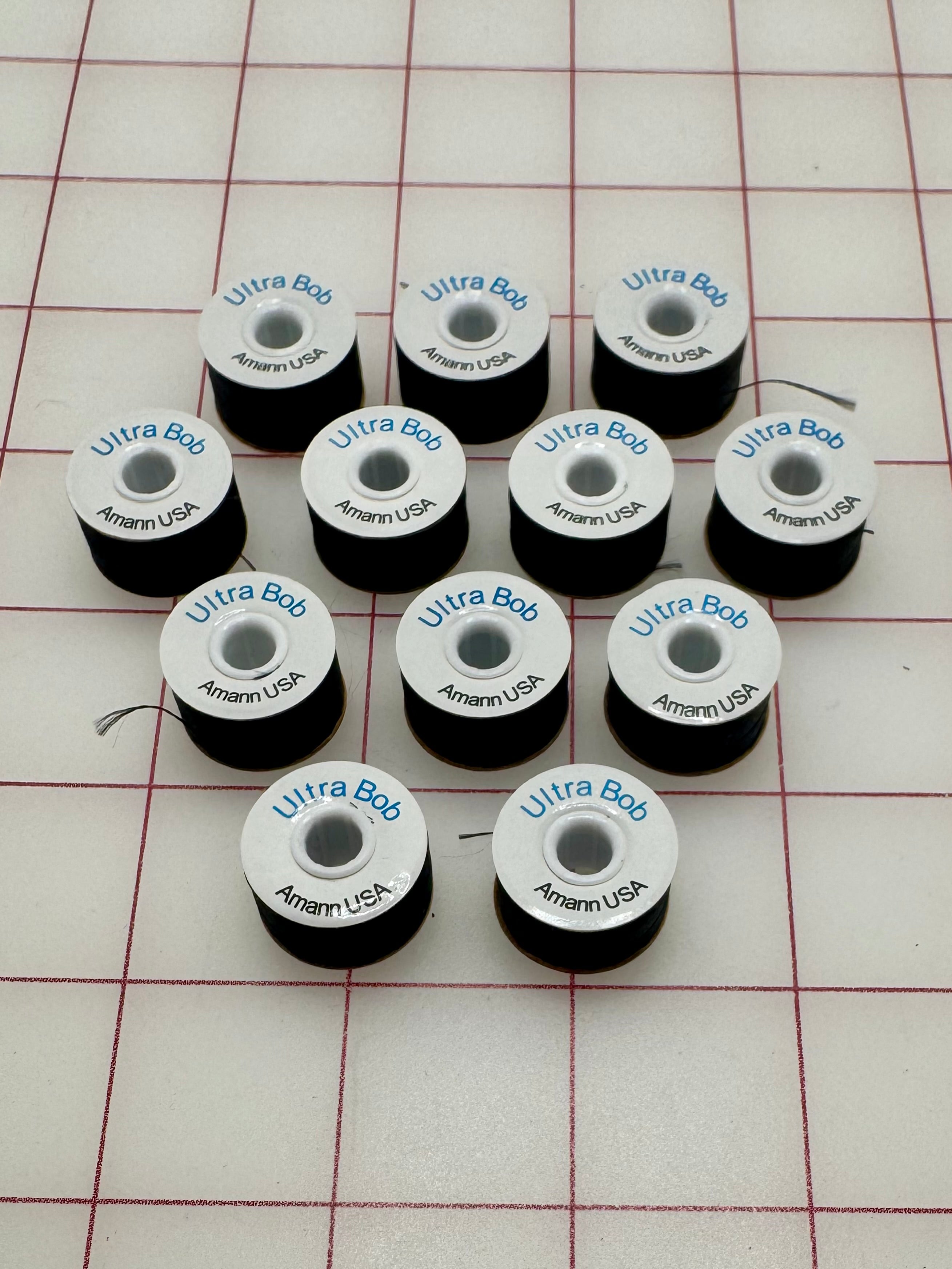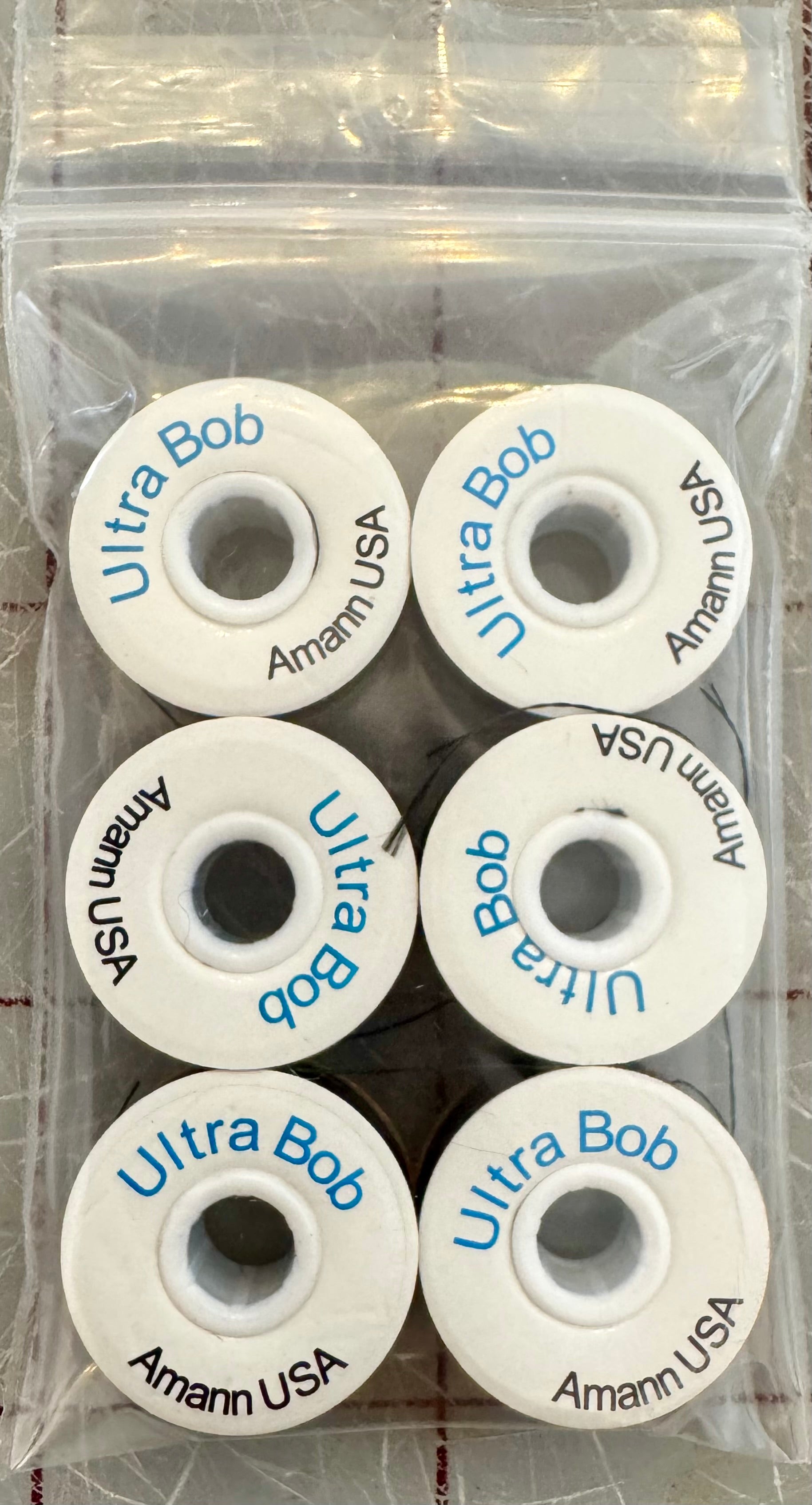 Priced per 6 spools. Black. SureStitch Ultra-Bobs pre-wound bobbins.