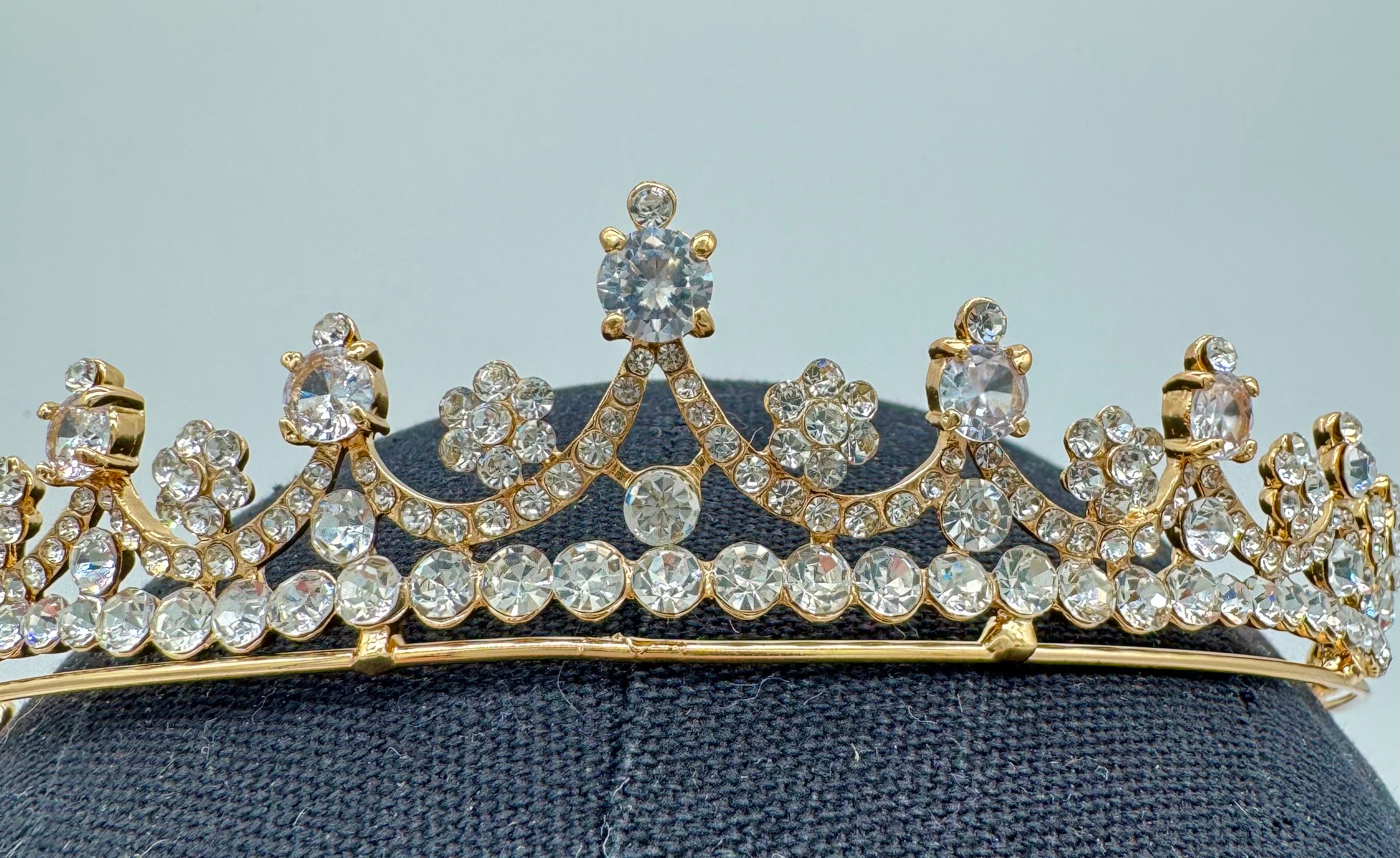 Priced per each. Beautiful gold and crystal delicate-style tiara. Perfect for many ballet roles.