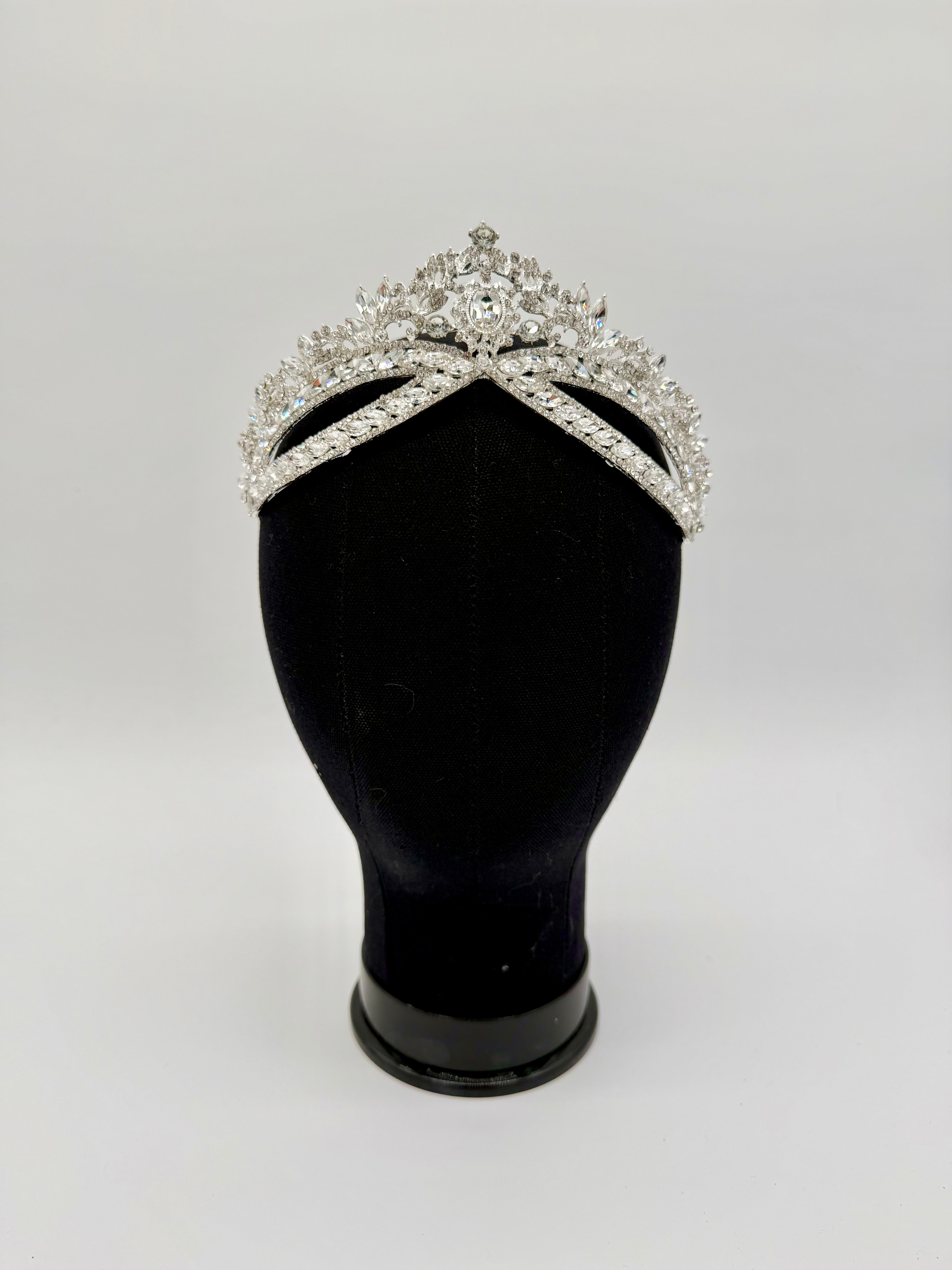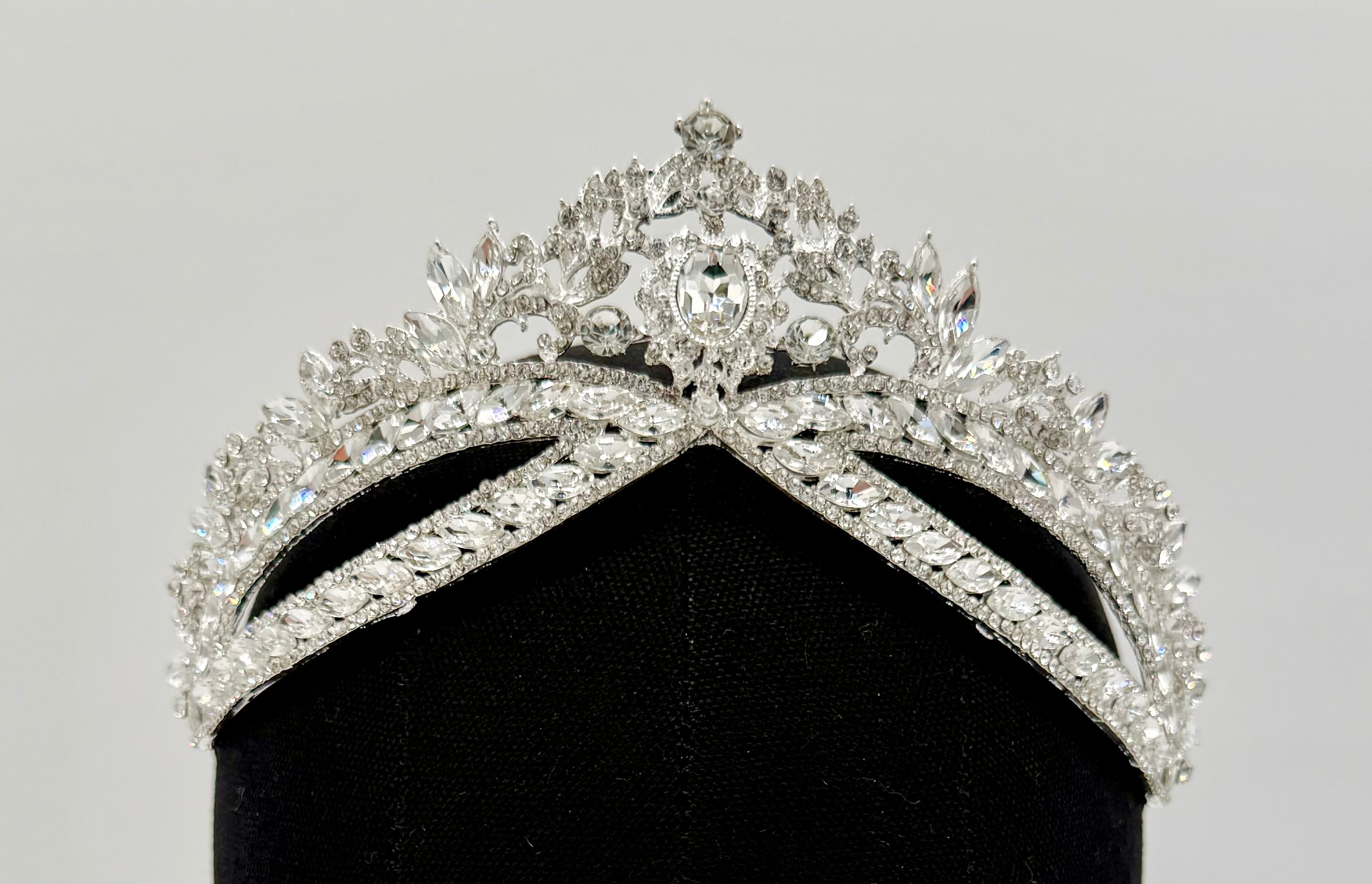 Priced per each. Beautiful silver and crystal royal-style tiara. Perfect for many ballet roles. This tiara can also be worn "upside-down" for a totally different look.