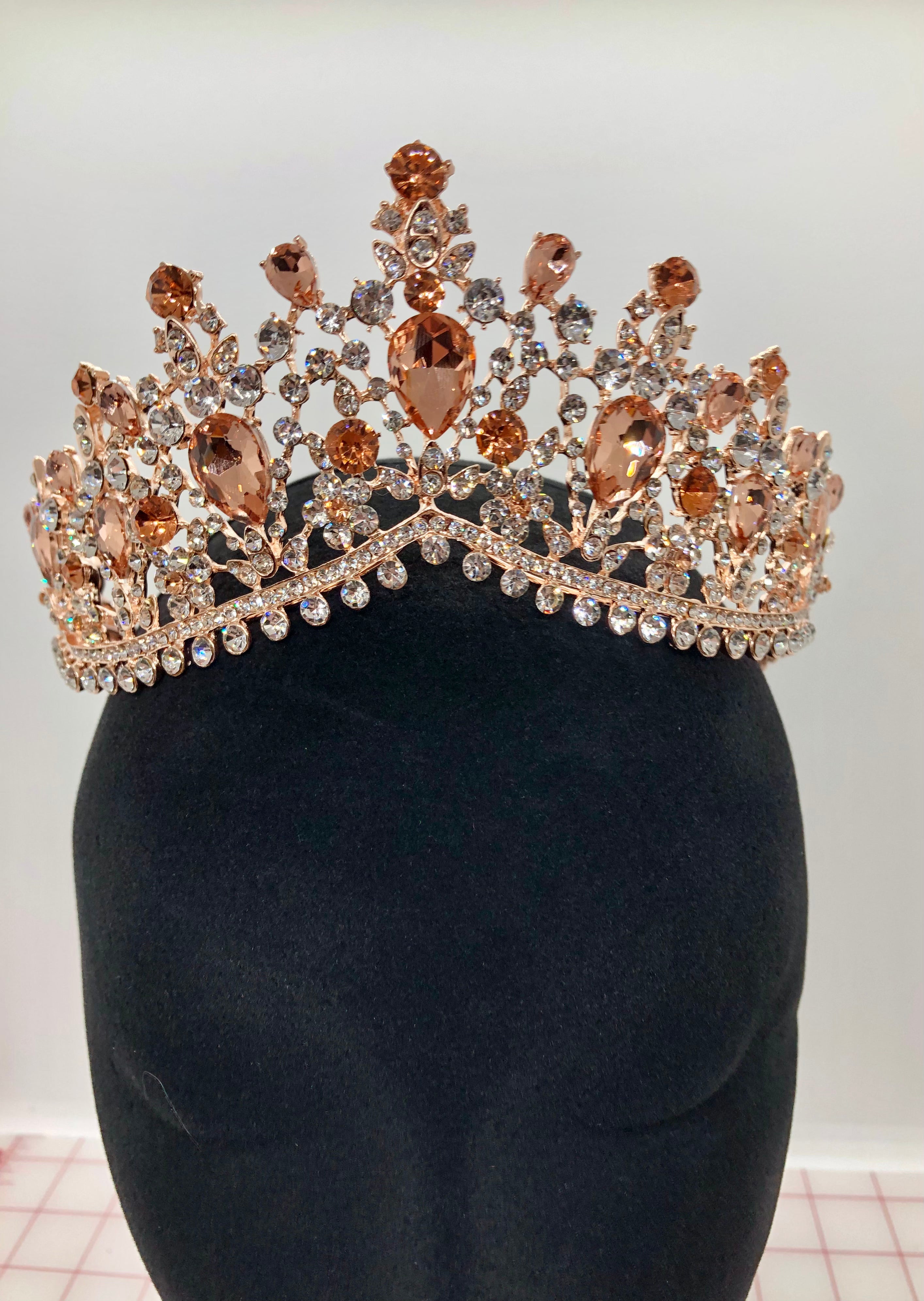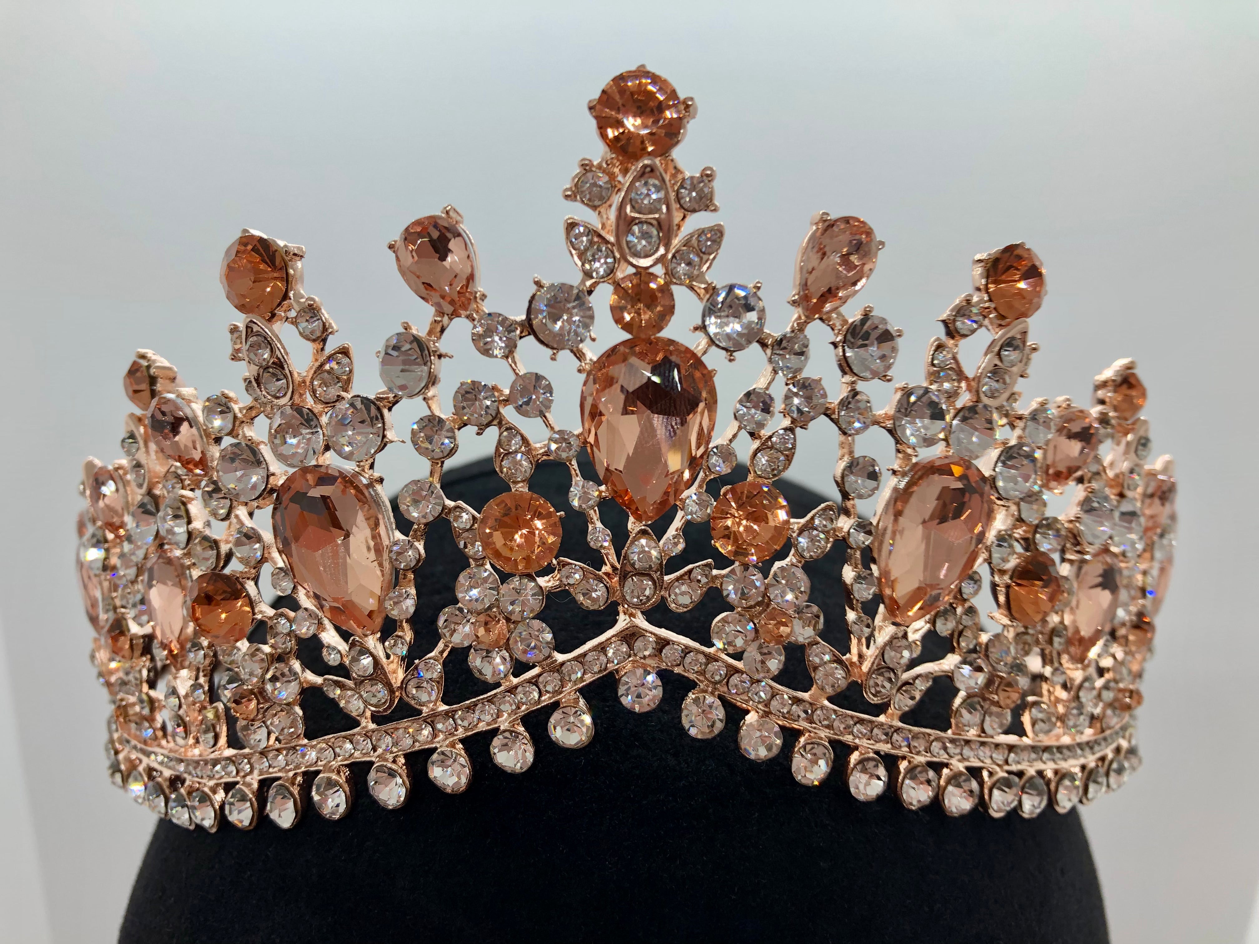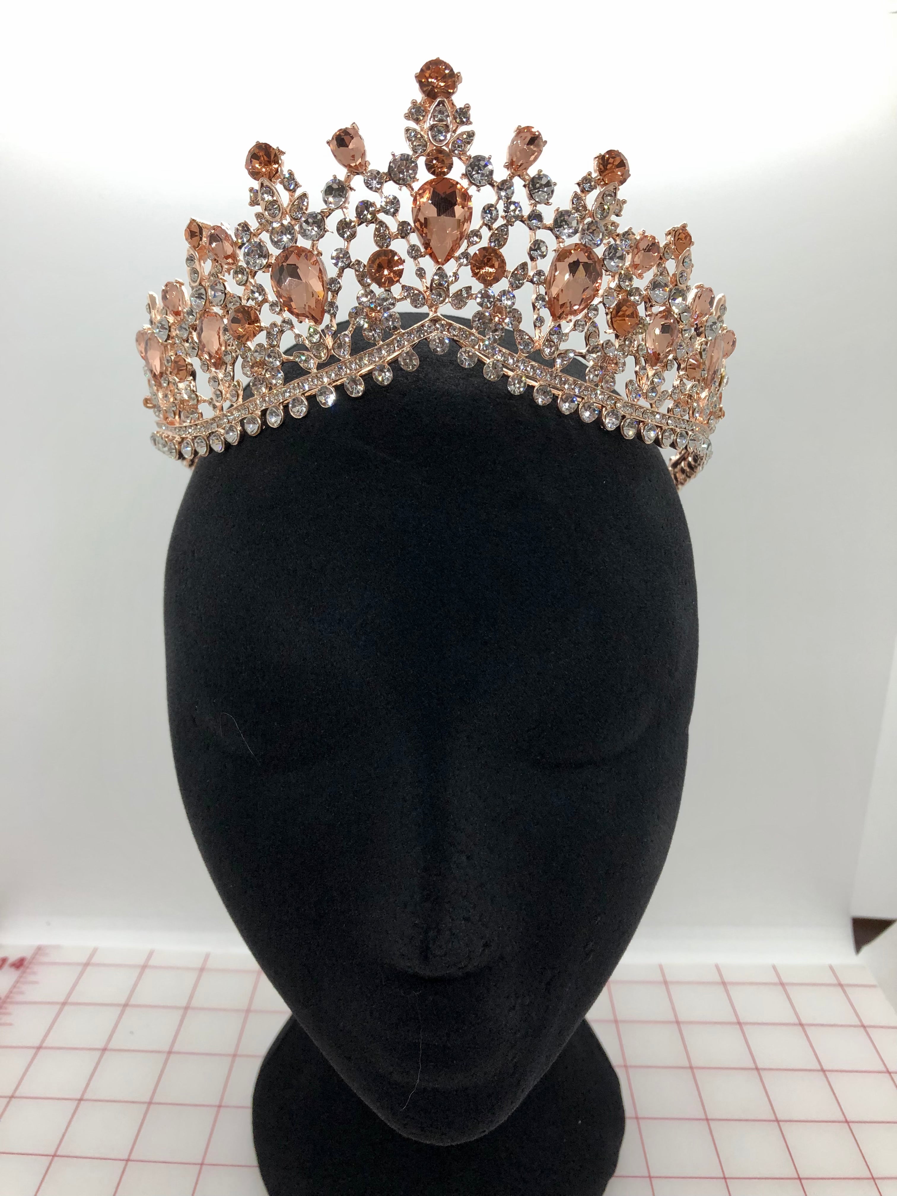 Priced per each. Elegant rose gold tiara with peach and crystal rhinestones. Perfect for many ballet roles.