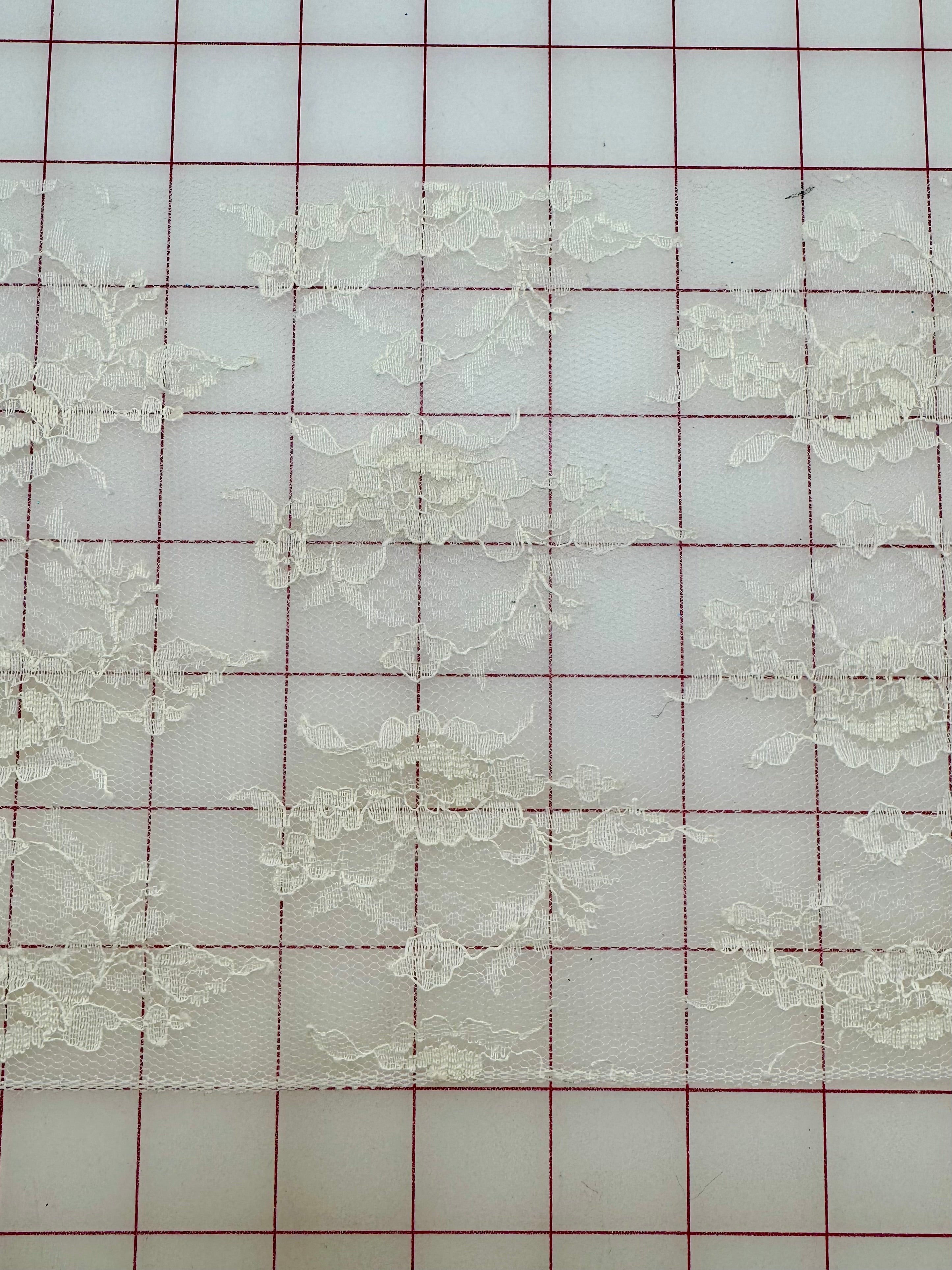 Priced per yard. Beautiful, cream-white vintage lace trim, 7-inches wide. Many beautiful motifs tht could be cut out and used separately.