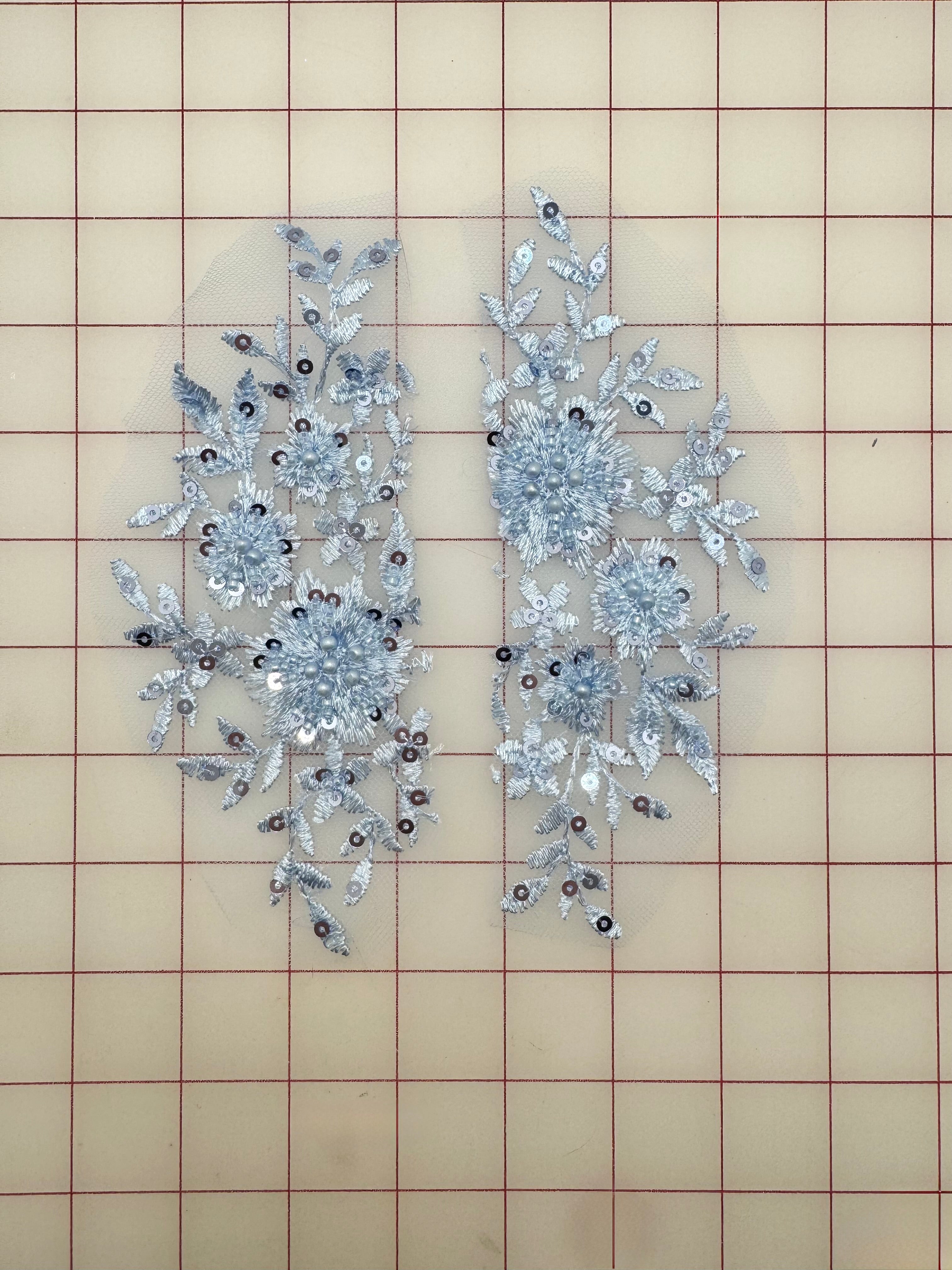 Priced per 2-piece pack. Light blue, sequined, embroidered applique.