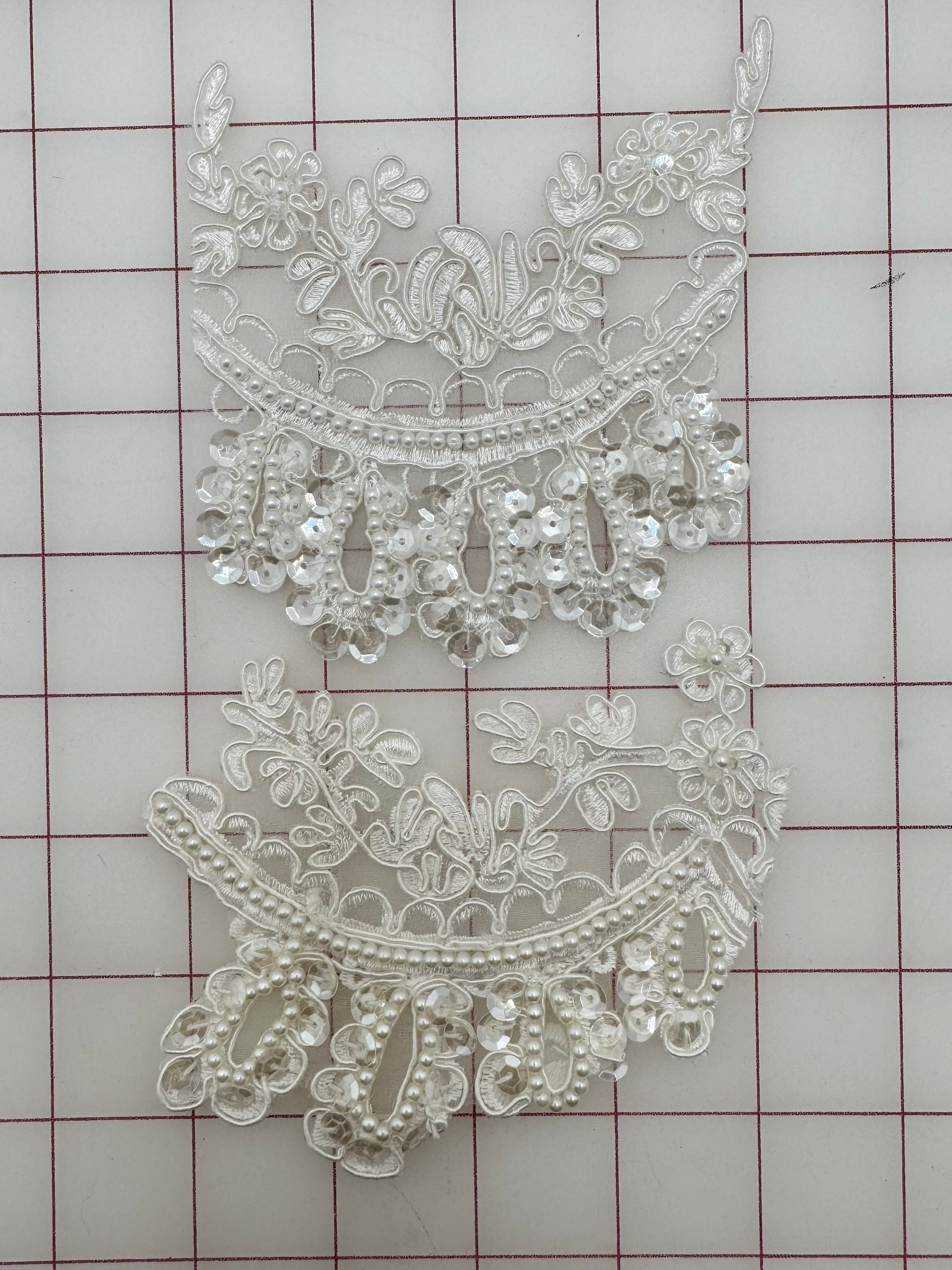 Priced per 2-pieces. Vintage white lace applique. Dye-able. Picture does not do it justice!