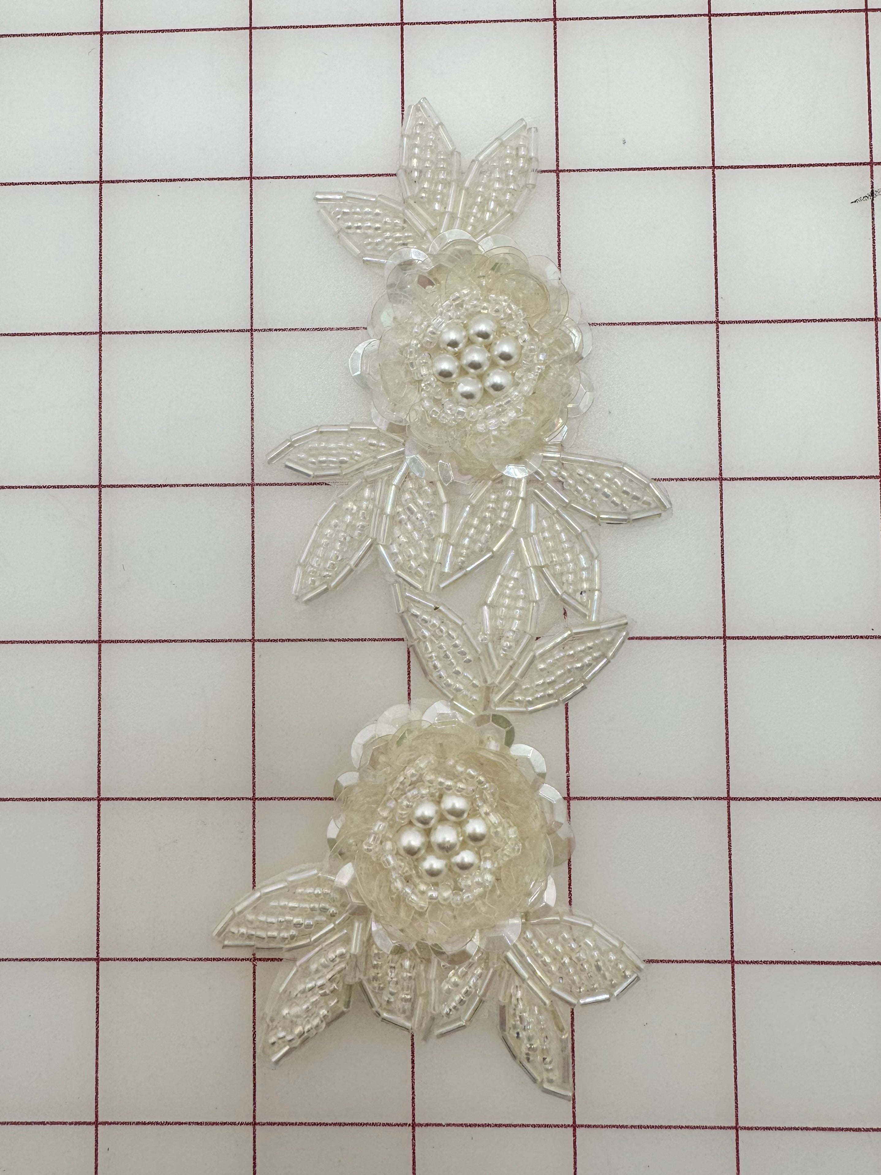 Priced per piece. Vintage pale ivory beaded applique. Dye-able.