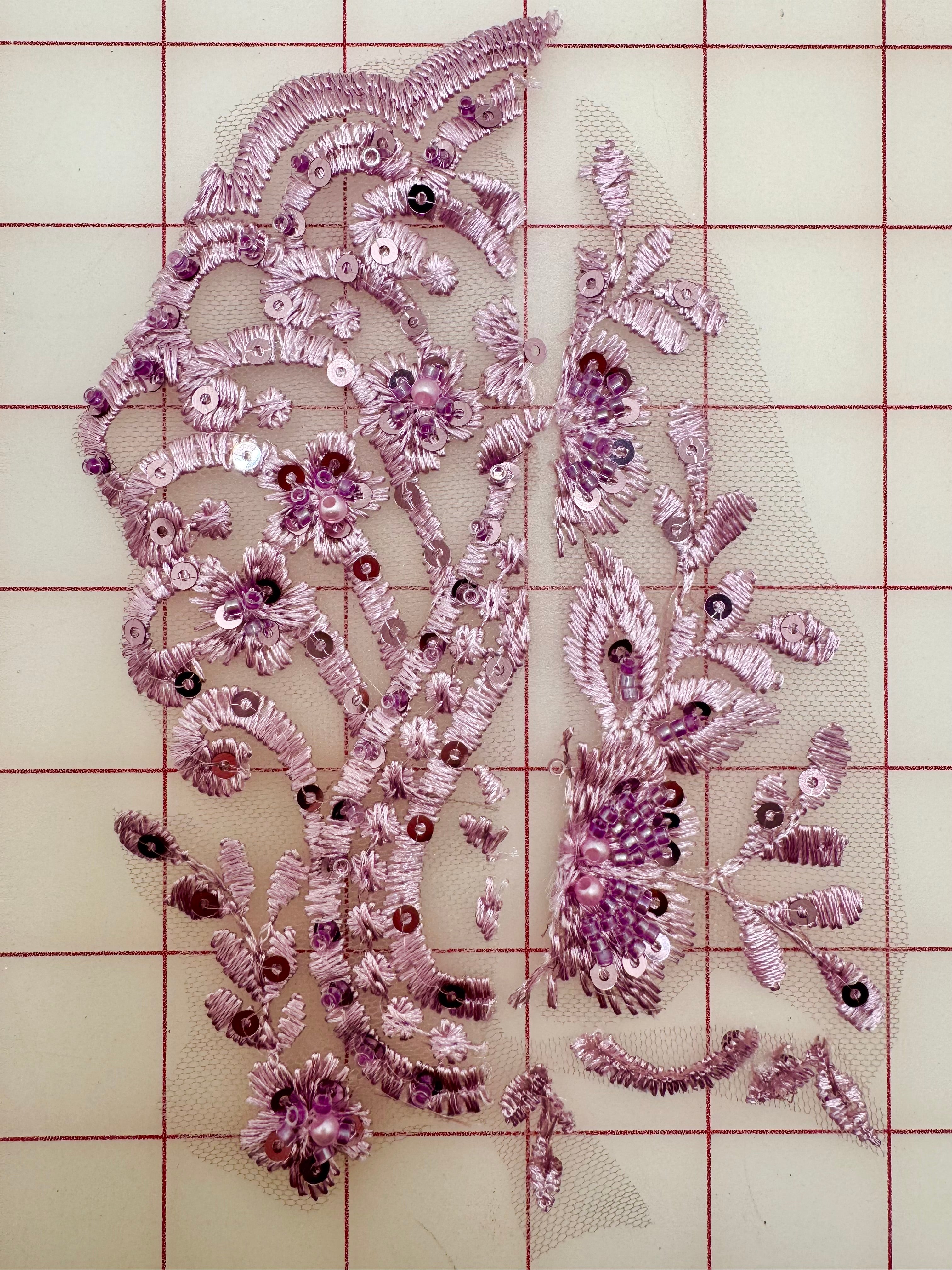 Priced per 2-piece pack. Gorgeous lilac beaded and embroidered lace with a beautiful border both sides and many motifs.