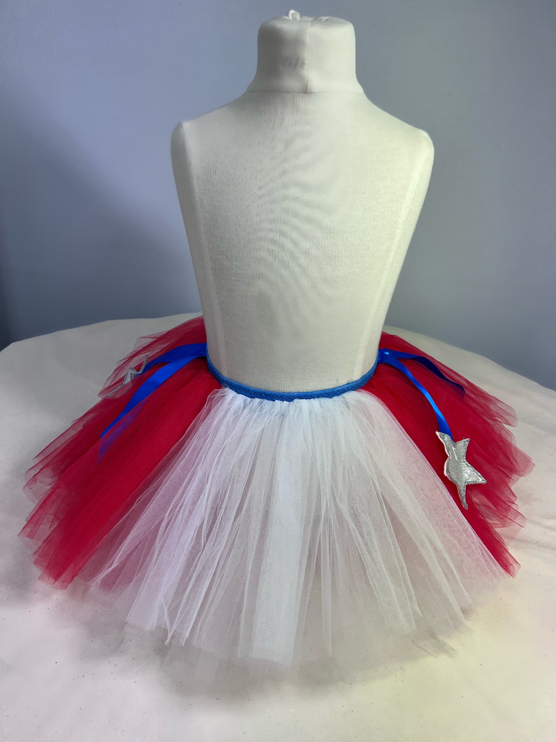 Priced per tutu. Celebrate Independence Day in style with these adorable, four-layer, pull-on tutus. Great for performances and for playing. Built on a sturdy dyed-to-match elastic band. Made to be worn over a leotard.