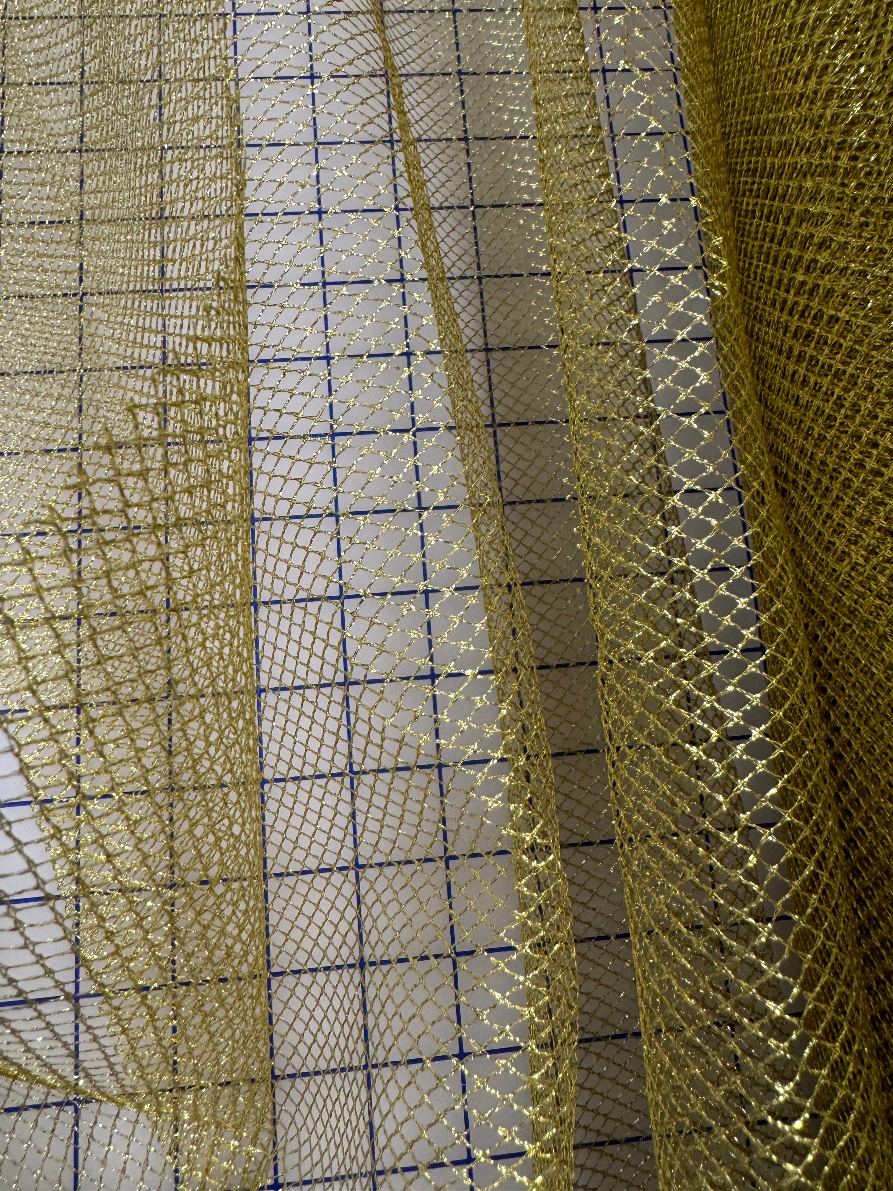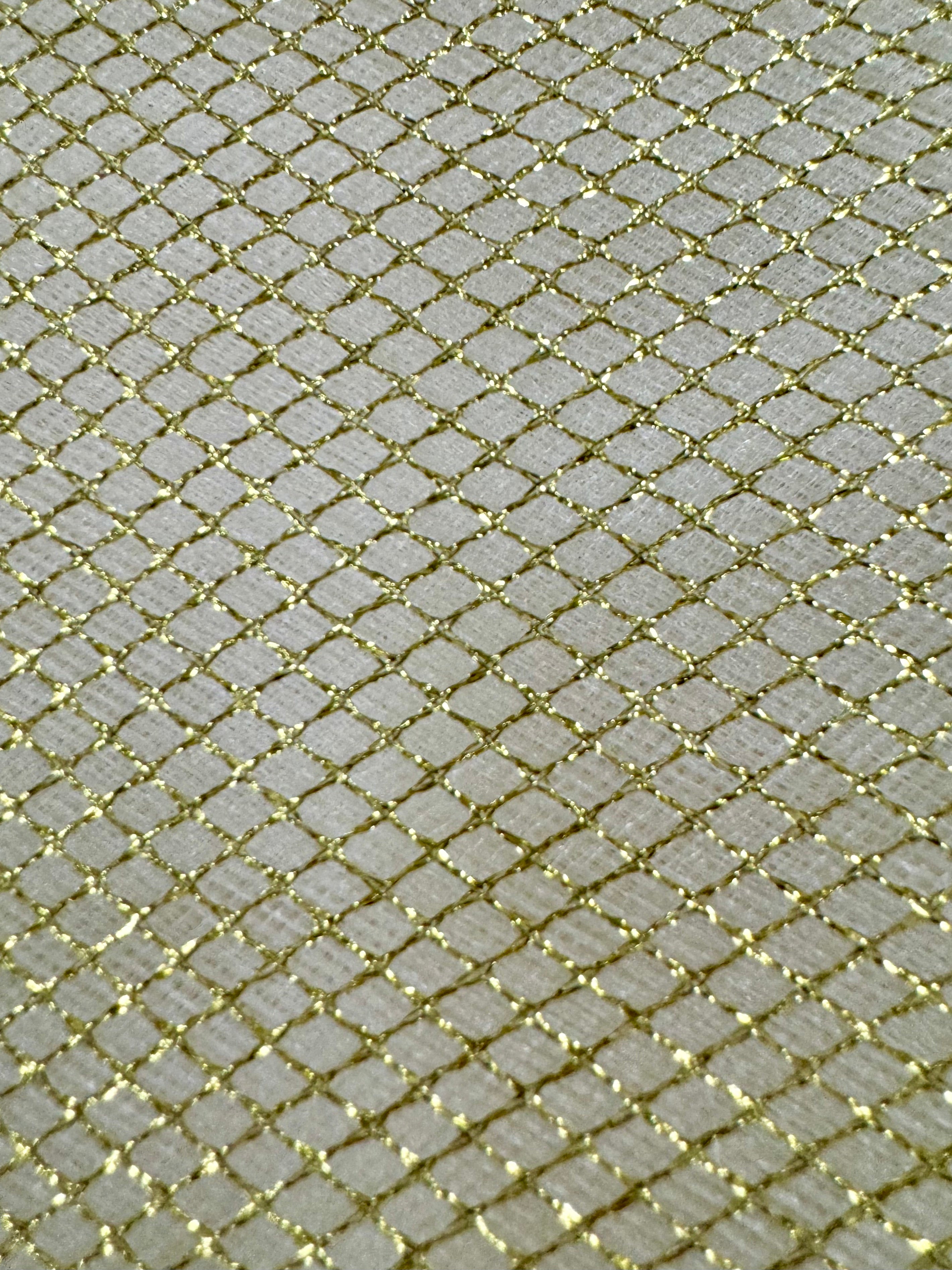 Priced per yard. Gold metallic mesh net, 57/58-inches wide. Ruffles and pleats up beautifully when mixed with tutu net.