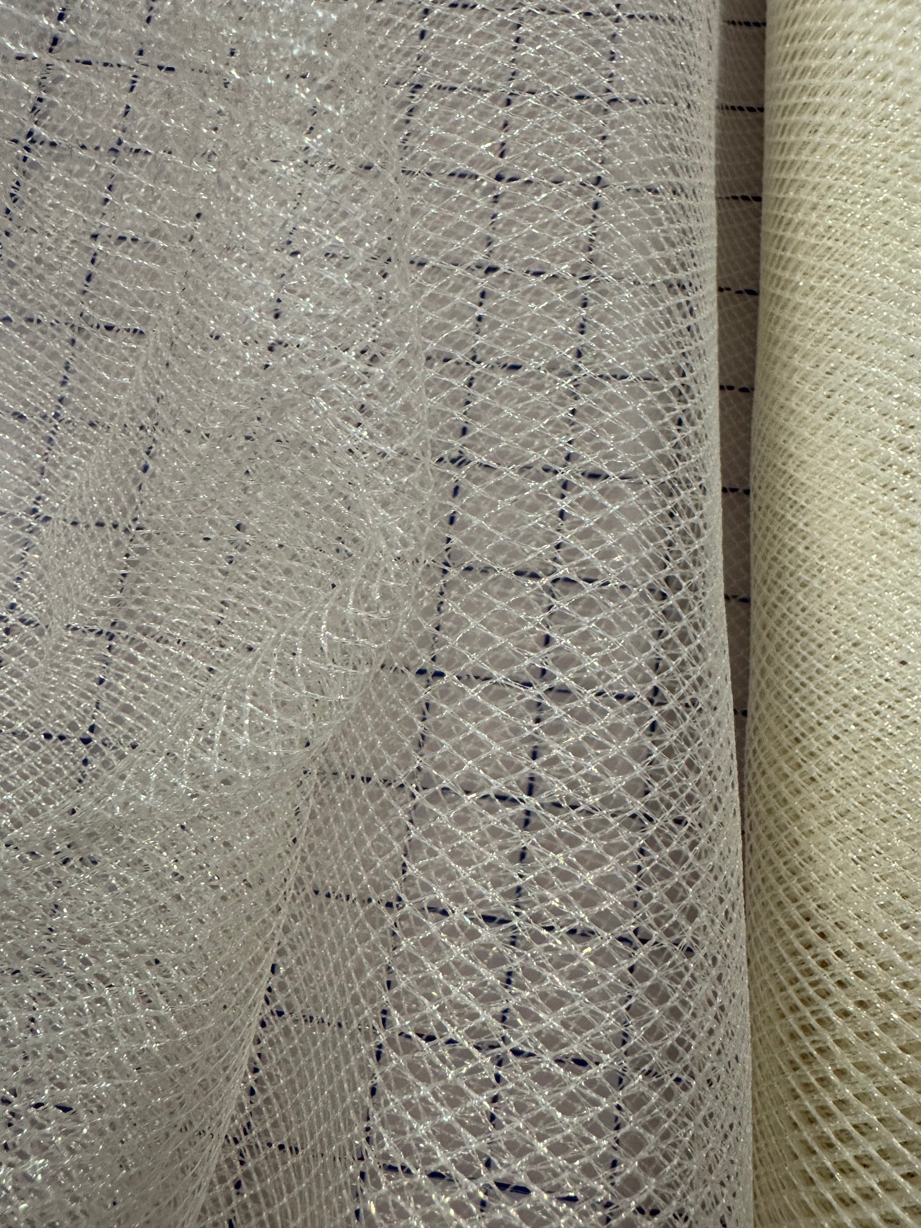 Priced per yard.Ivory iridescent metallic mesh net, 54-inches wide.