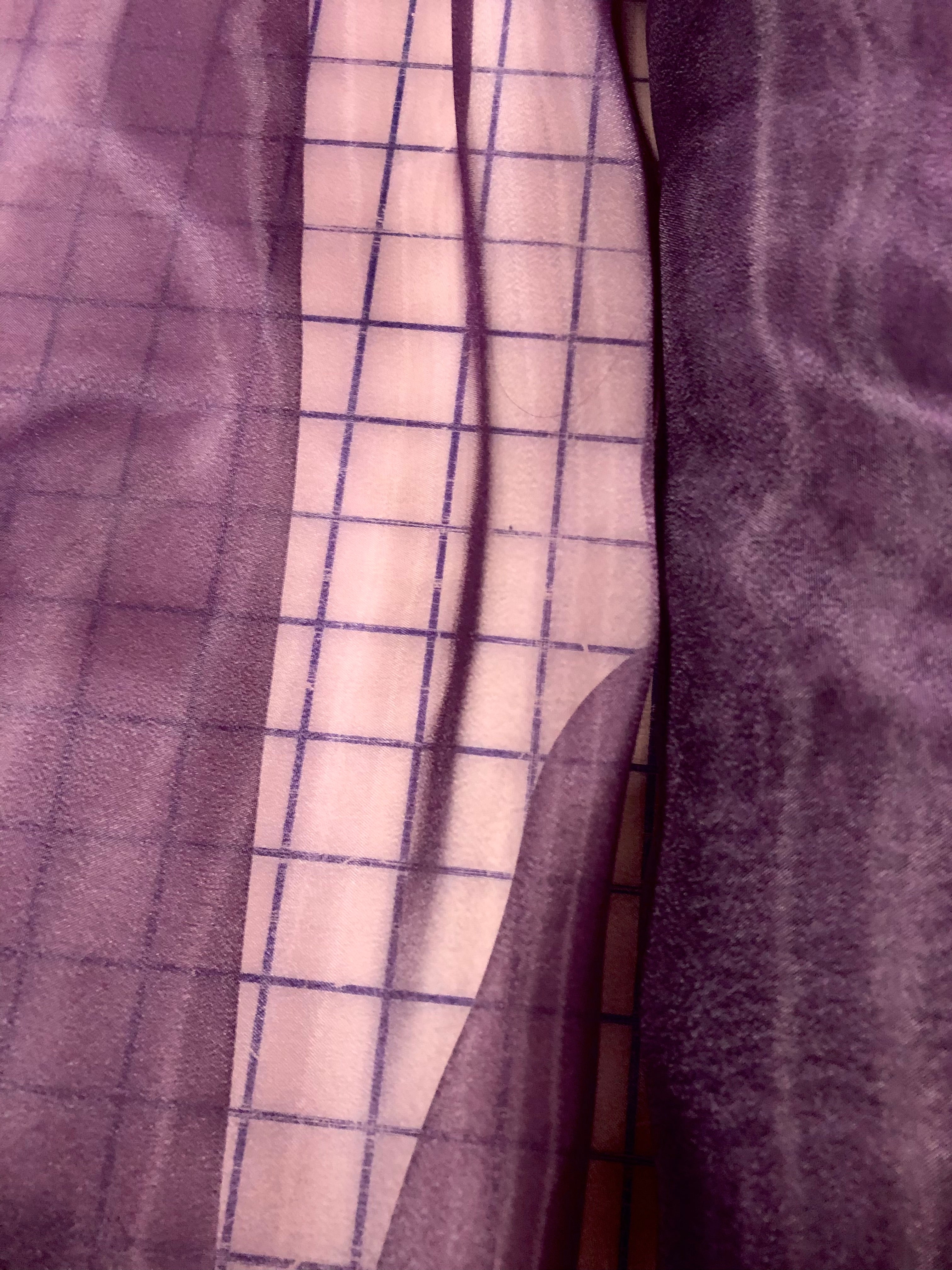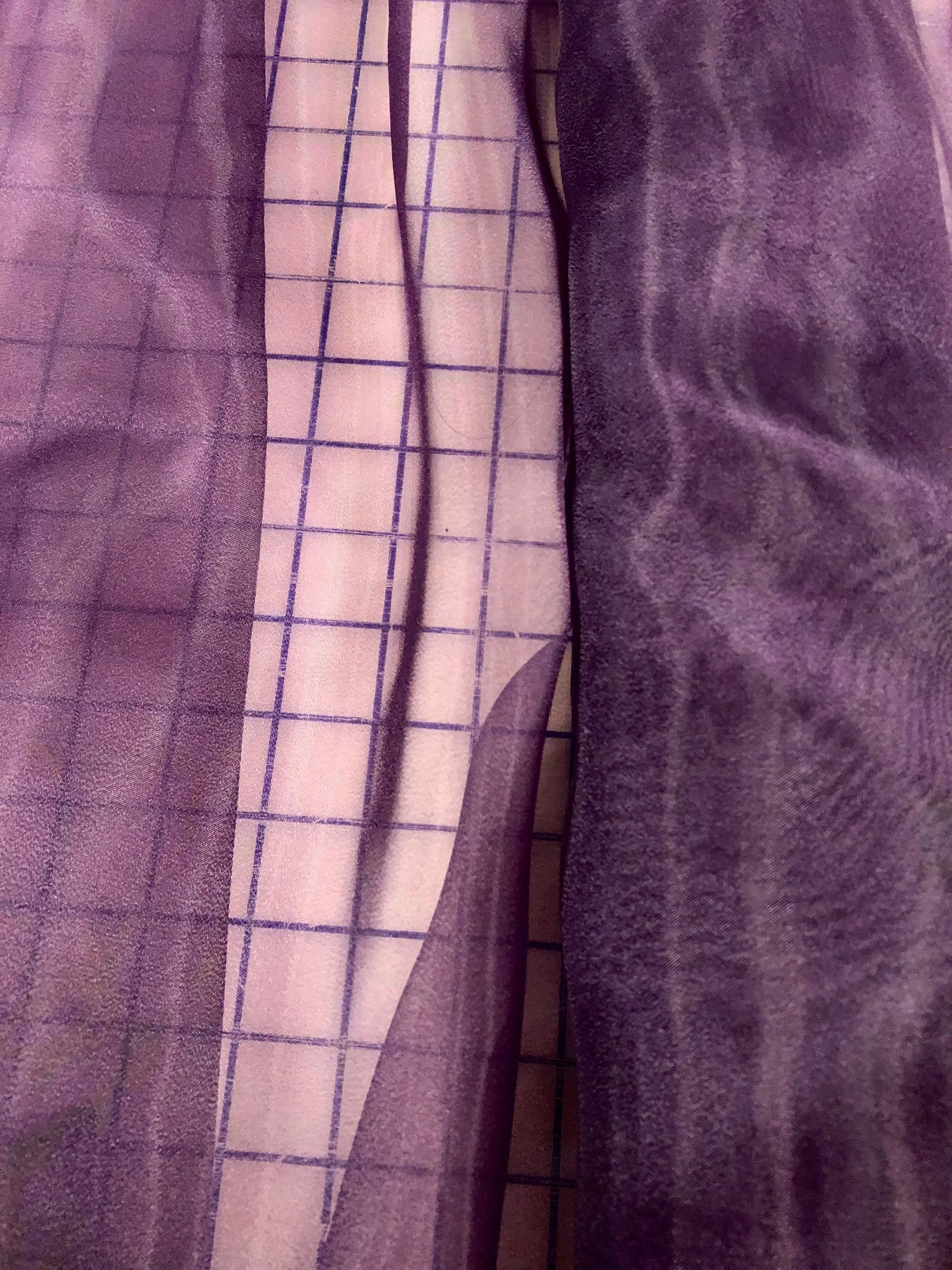 Priced per yard. 100% polyester Twinkle Organza. Beautiful fabric! 58-60-inches wide. Perfect for tiered Spanish-style skirts, and other ruffled skirts. Very silk-like look! Plum.