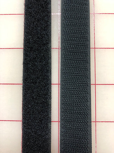 Priced per yard. 3/4-inch wide black sew-on velcro. Smallest length sold online: one yard. For smaller amounts, please call us at 877-888-8266 or 704-519-4771.