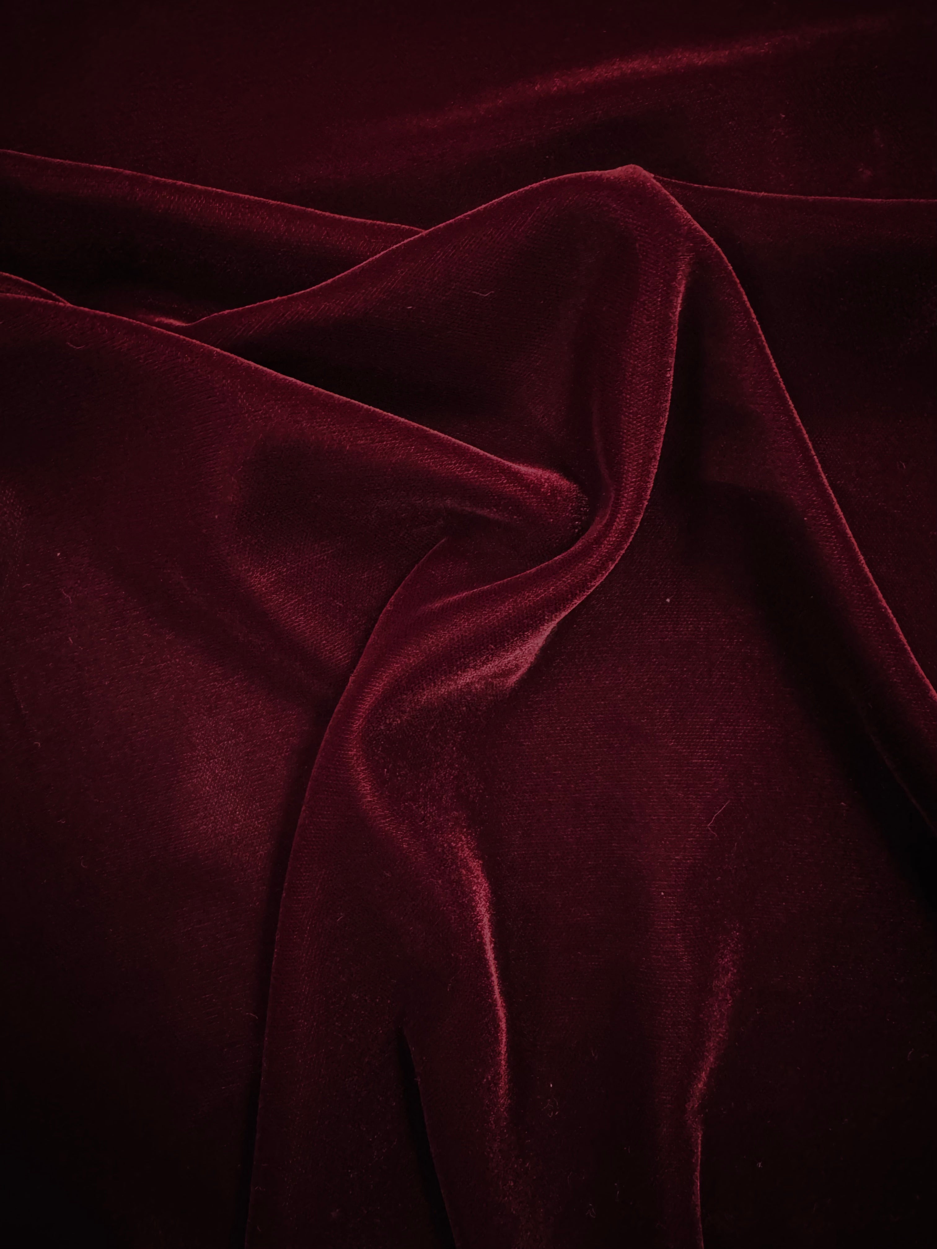 Priced per yard. Burgundy velvet, 45-inches wide.